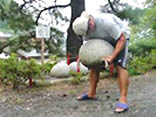 若狭の力石 「この石は古来、当区の若者達が力試しをした時使った石です。持ち上げたり、肩に担いで歩き、常に体力作りに励んだ昔を偲ぶ代表的な区の遺産である。」旧矢代小学校近くの道沿いに整備保存されている「力石」の説明書です。 内外海半島の11の集落に現存している「力石」は、全部で19個ありますが、氏神さんの境内や、お堂の片隅に放置された存在となっています。 矢代区の西村岩雄さん(故人 当時80才)は、今では忘れられたこの庶民文化を後世に伝えようと、村人達の手を借り整備しました。 |